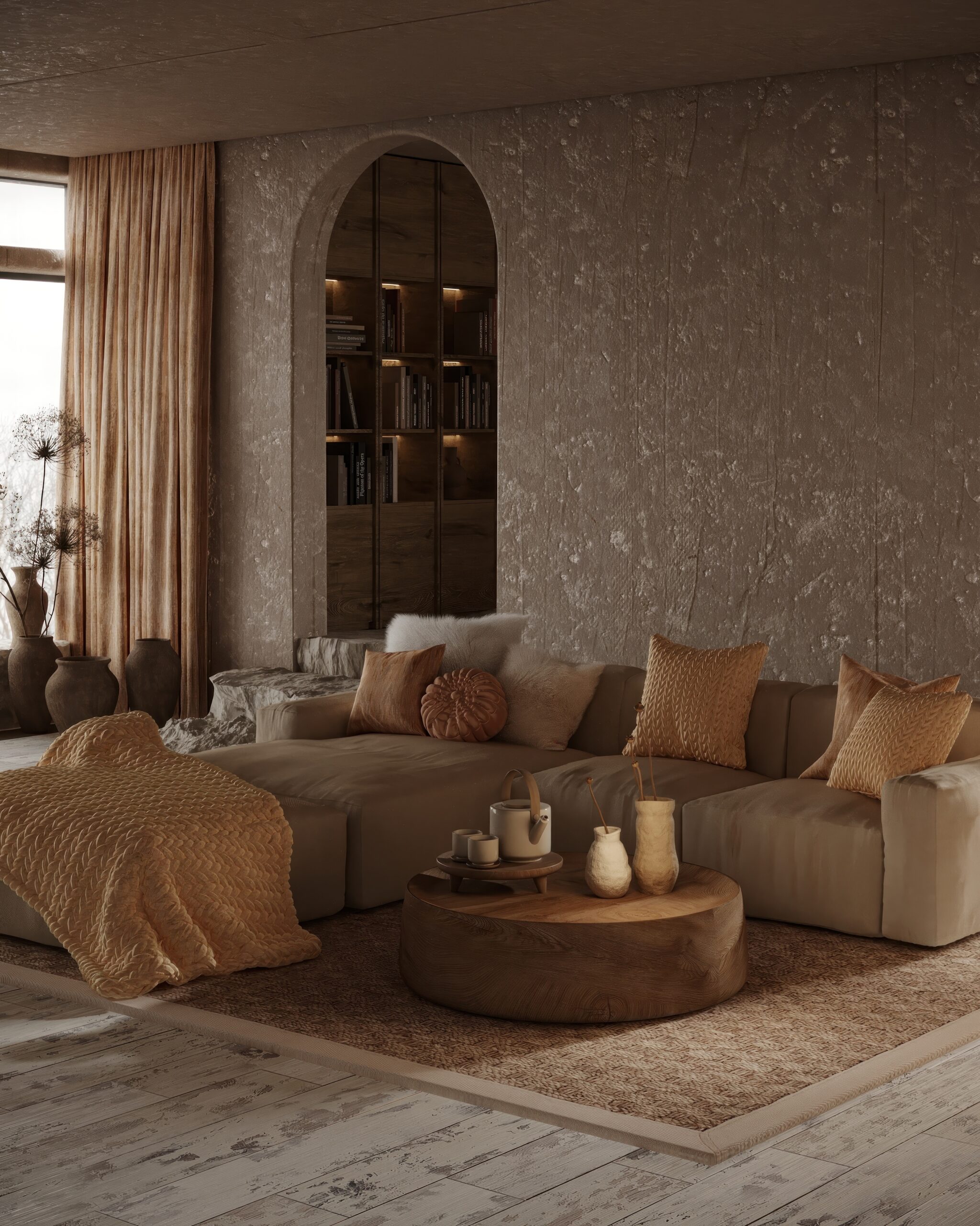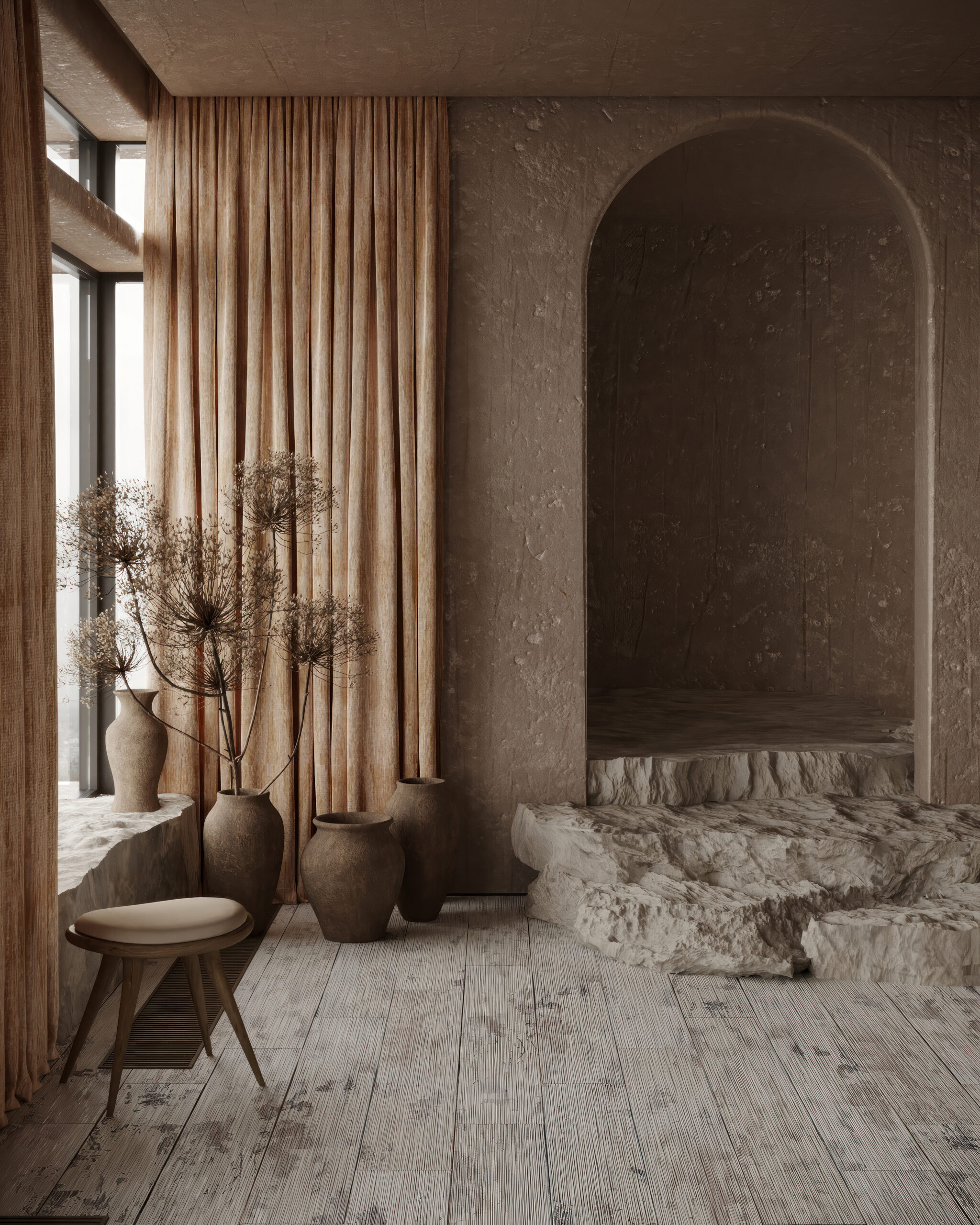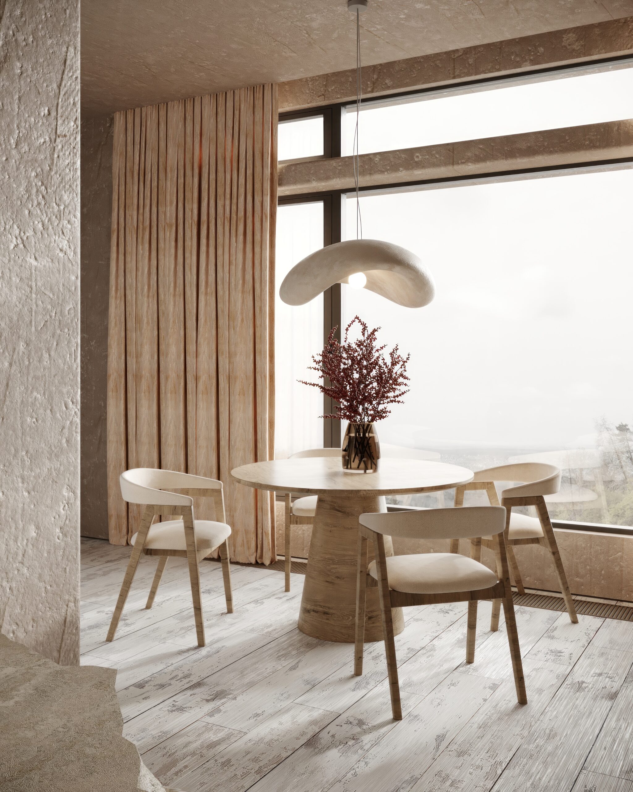 This interior is about balance. Here, air and stone come together to create a space where comfort, harmony and beauty of nature are intertwined with modern aesthetics.